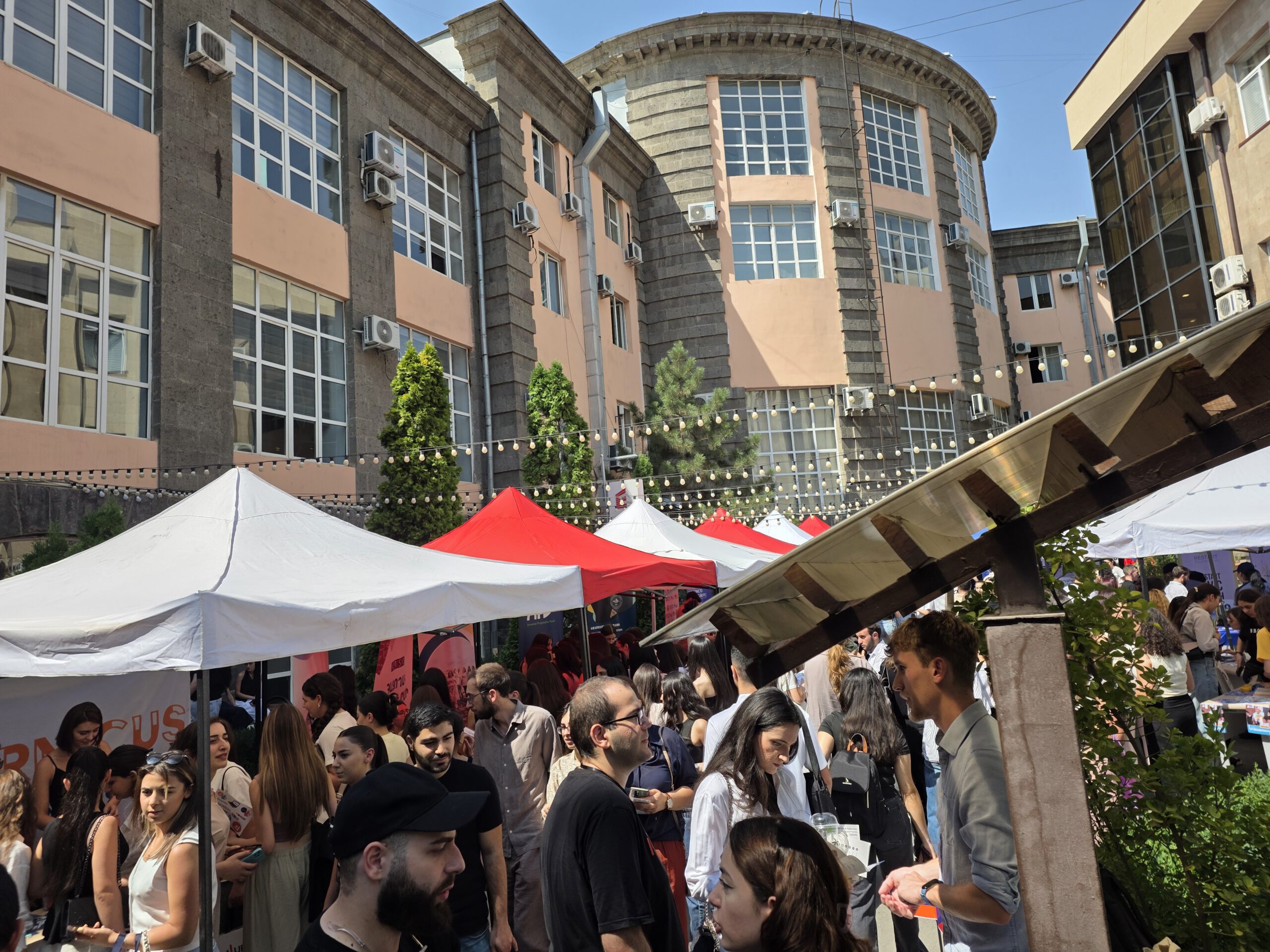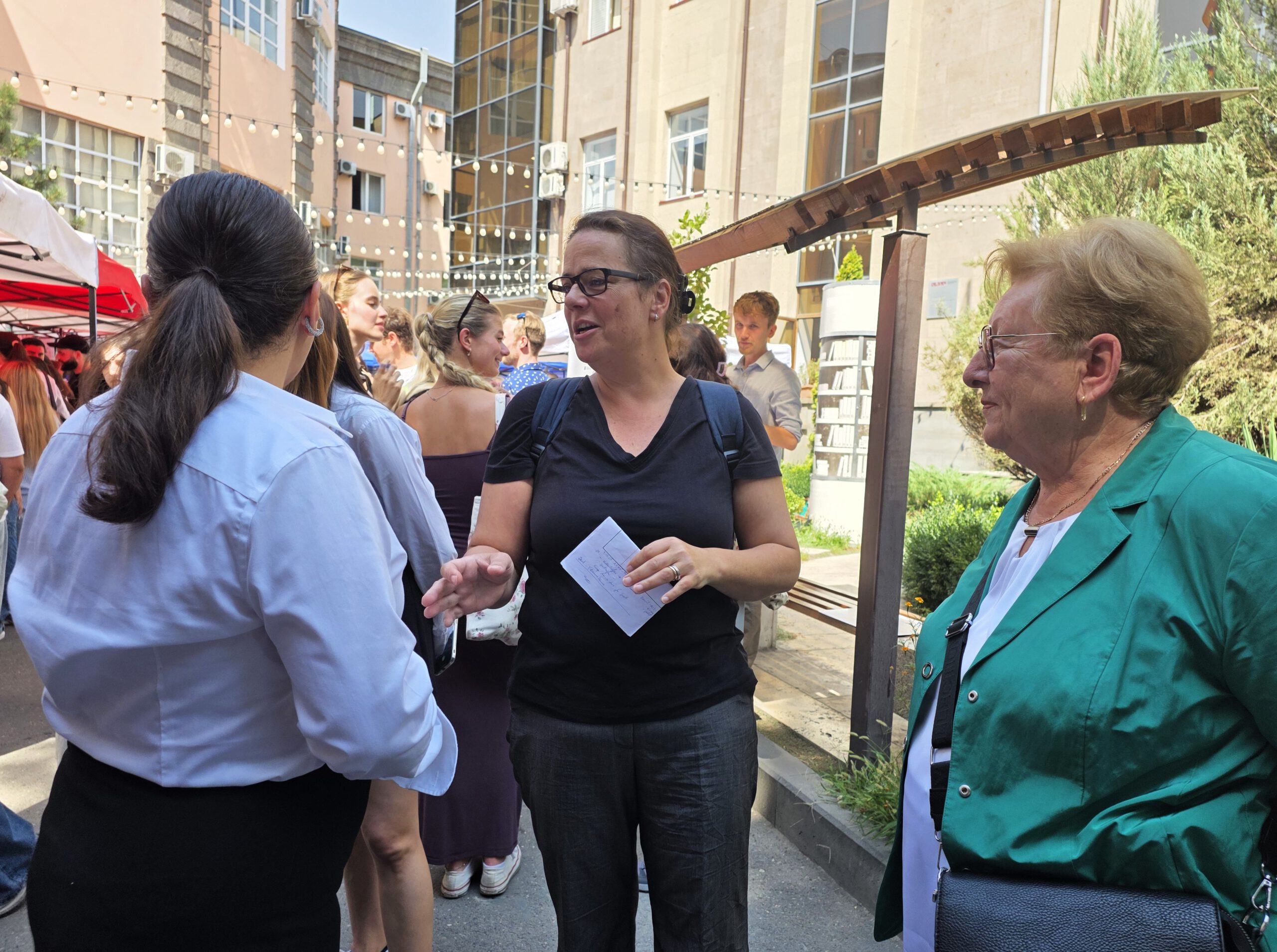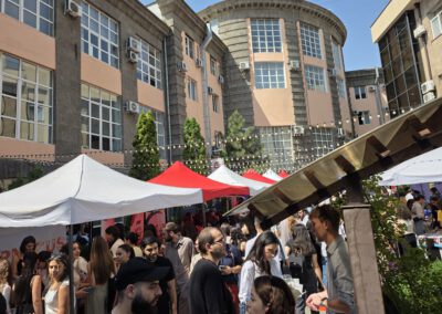 Höhepunkt war am Freitag, dem 5. September, die große Messe „F.E.S.T.” an der Wirtschaftsuniversität Erewan (ASUE), die zahlreiche Organisationen zusammenbrachte, die sich für internationale Jugendarbeit und Austausch engagieren. Wir waren mit dabei – sowohl mit einem eigenen Stand als auch als Kooperationspartner von Copernicus Berlin e.V.: Anlass war ein Trainingsprogramm im Bereich Jugendarbeit, das unter anderem durch die Stiftung unterstützt wurde.